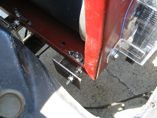 You can see the motor support structure again here - also note the shims under the red motor frame. It was difficult to get the motor and differential shaft to line up perfectly. I still don't think it perfect.