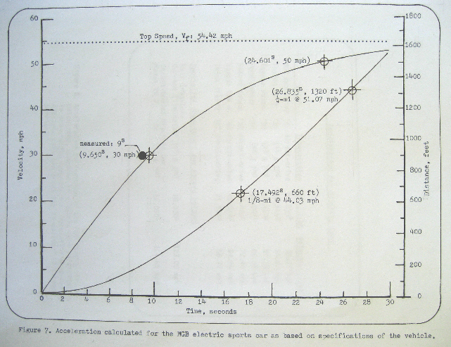 Acceleration calculated for the MGB electric sports car as based on the specifications of the vehicle